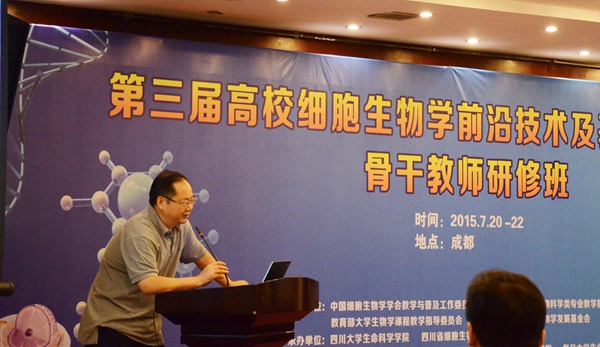 2015年7月20—22日,一年一度的中国细胞生物学技术交流学习盛会——“第三届高校细胞生物学前沿技术及基础实验示范骨干教师研修班”在成都隆重举办。此次会议由中国细胞生物学学会教学与普及工作委员会、教育部高等公司生物科学类专业教学指导委员会、教育部高等公司老员工物学课程教学指导委员会以及上海市创新细胞生物学发展基金会主办,tyc5997太阳集团和四川省细胞生物学会承办,高等教育出版社、北京老员工命科学公司,清华老员工命科学公司以及复旦老员工命科学公司协办。包括清华、北大、复旦等50家单位共计110多名一线教师参加了此次研修班。研修班开幕式由教育部高等公司老员工物学课程教学指导委员会委员、中国细胞生物学学会常务理事、tyc5997太阳集团邹方东教授主持。tyc5997太阳集团教务处刘肖珩主任、中国细胞生物学学会副理事长丁小燕研究员、教育部高等公司生物科学类专业教学指导委员会秘书长张贵友教授、tyc5997太阳集团常务副经理林宏辉教授、四川省细胞生物学会理事长杨毅教授分别在开幕式上致辞。