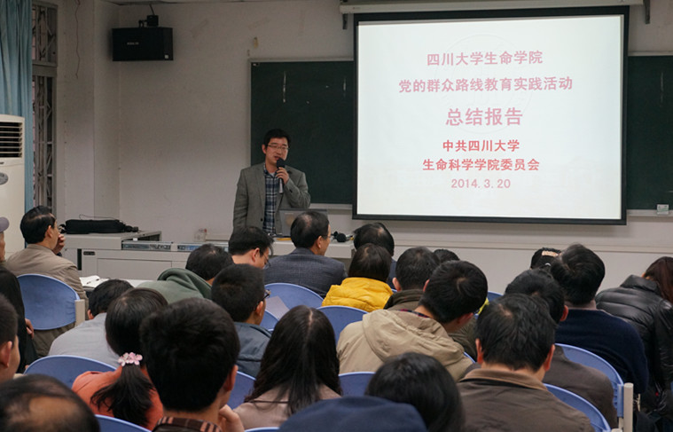 廖爱民副书记代表公司党委作党的群众路线教育实践活动总结报告。他从三个方面就生命公司开展党的群众路线教育实践活动进行了总结:一、加强领导、落实责任,使群众路线教育实践活动工作到位。公司根据中央及公司文件要求制定实施方案,建立领导小组,通过广泛动员和宣传,使群众路线教育活动深入人心,并在执行过程中严格要求,注重实效;二、统筹兼顾、协调推进,切实做好了教育实践活动各环节工作。公司领导班子多次集中学习、认真研读教育实践活动的有关文件资料,通过座谈会、调差问卷等方式深入调查研究,广泛听取意见,并通过民主生活会等形式深入开展批评与自我批评;三、教育实践活动取得的成效,领导班子存在的问题及下一步努力方向。通过党的群众路线教育实践活动,公司领导干部思想认识普遍提高,使班子成员理想信念进一步坚定。通过围绕“四风”查摆问题,紧密联系工作实际和思想实际,认真开展批评和自我批评,开展积极健康的思想斗争,敢于揭短亮丑,真正触及思想和灵魂。公司领导班子坚持把教育实践活动作为推动试点公司跨越发展的重要动力,与学科发展、人才培养、科学研究等中心工作结合起来,坚持“两手抓、两促进、两不误”,取得了明显成效。公司领导班子将进一步切实抓好整改落实、建章立制的各项后续工作,按照整改方案的任务书、时间表,一项一项抓落实。