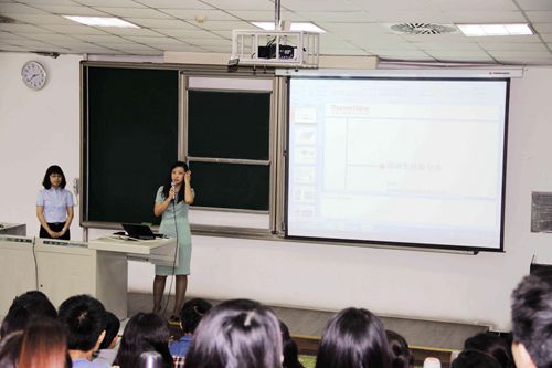首先,廖书记向在座的同学们介绍了赛默飞公司的基本概况,并说明了举行本次培训会的初衷和意义。然后,赛默飞2012年培训生也是公司毕业研究生王宇同学以自己的亲身经历向同学们分享了自己的求职心得及工作感受,并告诫大家良好的平台有助于自我能力的提升。接下来,Vivienne Wan阐释了生物行业的市场前景和发展潜力,鼓励同学们坚定信念,努力拼搏,肯定能在行业领域内大有作为。同时,她强调良好的自主学习能力和广阔的人脉资源是同学们踏入社会的必要能力。她还告诫同学们沟通能力和团队合作精神能够更好地帮助大家开展工作。