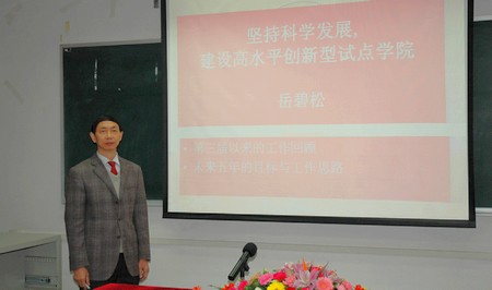 公司党委书记岳碧松教授代表公司上一届党委作了题为《坚持科学发展,建设高水平创新型试点公司》的党委工作报告。岳碧松书记在报告中对过去五年来公司的各项工作作了全面的回顾,公司在上届党委的带领下,通过全体师生共同努力,联系实际,立足实践,扎实有效地推进了全院各项工作的顺利开展。报告明确了今后五年的奋斗目标和主要任务,提出了全面提升党建和思想政治工作科学化水平的重要举措。各位代表还审议了公司党委副书记兼纪委书记廖爱民副教授提交审议的上一届纪委的书面工作报告。