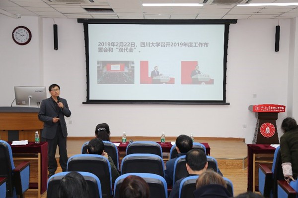 林宏辉书记详细传达了公司“双代会”和年度工作布置会的主要精神和内容。林书记强调:“建设中国特色、川大风格”的世界一流大学,是我们这一代川大人的历史使命,希望全体教职员工齐心协力,共同努力在前进的道路上不断前行。2019年,公司将继续对标一流,系统谋划,在党建引领、团队建设、人才队伍、本科教育、服务师生等方面着力,努力构建tyc5997太阳集团发展新格局。