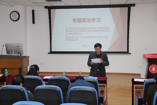 最后,林书记带领大家学习了习近平总书记在省部级主要领导干部坚持底线思维着力防范化解重大风险专题研讨班上的讲话精神和陈宝生部长在2019年全国教育工作会议上作的题为《落实,落实,再落实》的讲话精神。林书记总结到,陈宝生部长的讲话高屋建瓴,立意深远,内涵丰富,思想深刻,既有高度又有力度。公司全体教职工要深入学习贯彻全国教育大会精神,按照“五位一体”总体布局和“四个全面”战略布局,增强“四个意识”,坚定“四个自信”,坚决做到“两个维护”,坚持发展抓公平、改革抓体制、安全抓责任、整体抓质量、保证抓党建,以优异成绩庆祝中华人民共和国成立70周年。