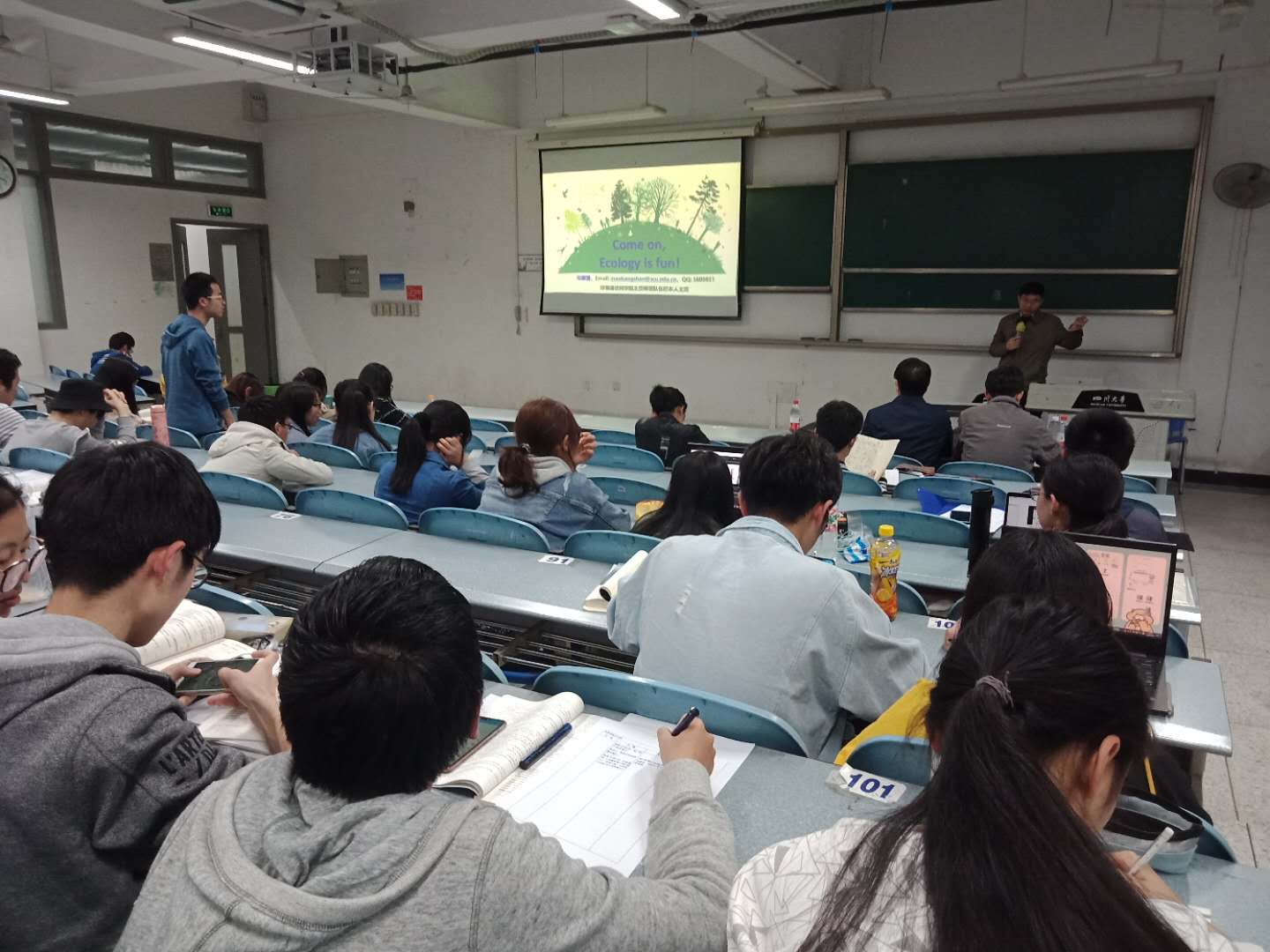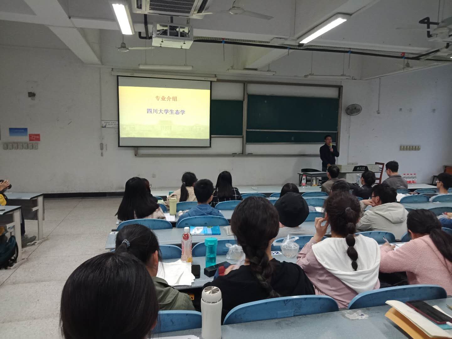 在大川河流间流连学术,于平淡自然中拯救地球——生态学打响了宣讲的第一炮。冉江洪、毛康珊两位教授依次从专业培养目标,专业特色与就业前景方面对生态学进行了详细介绍,并以系统性强,层次丰富,多学科交叉的特点,提出了“学习生态,拯救地球”的美好宣言。宋昭彬教授负责答疑环节。同学们纷纷意识到,宏观系统的思维体系将使得生态学大有可为!