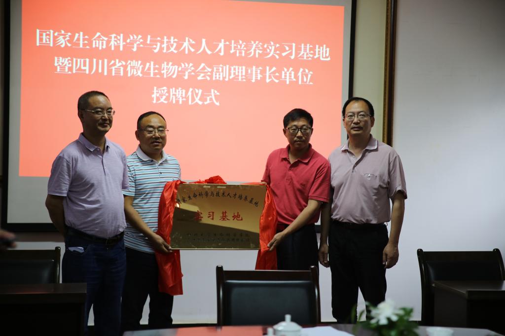 tyc5997太阳集团书记林宏辉教授、副经理赵云教授、泸州市科技和人才工作局副局长陈卫东给实习基地授牌授牌,公司总经理马超接受了授牌