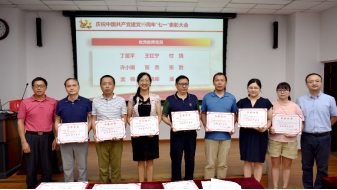 微党课结束后,表彰大会正式开始。公司党委书记林宏辉教授致辞并宣读表彰决定,本次表彰公司有1个先进党支部、9名优秀党员、2名优秀党务工作者和4名抗疫工作者获得表彰,公司党委委员分别为受表彰的组织和成员进行了颁奖颁奖。通过表彰先进典型,充分发挥先进典型的示范引领作用,动员全院师生党员努力奋斗,奋力推进公司“两个伟大”建设。