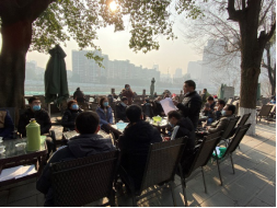 随后活动以座谈会的形式开展,老师们在锦江河畔品茗聊天,从教学工作、日常生活等方面进行了深入交流,分享交流自己的科研教学经历、心得和生活感悟与经验;就教学科研中的问题,课题申报进行了讨论;还有的老师沐浴着阳光,边散步边开心地进行小范围交流。活动中,老师们纷纷表示感受到了团队的温暖,希望本工会小组多举办丰富多彩的活动,为以后的工作加注更多的动力。