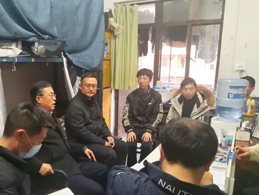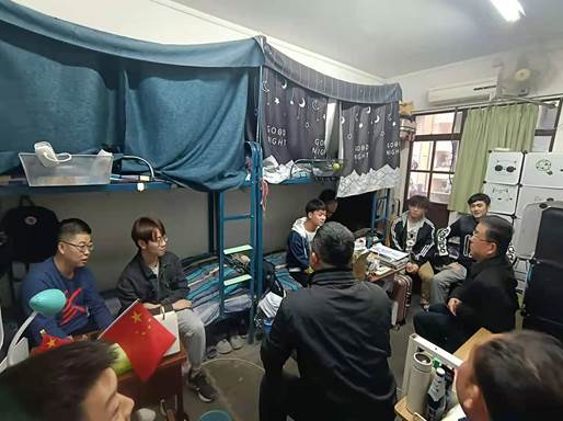 在414寝室,侯董事长就改善学习生活环境条件方面积极征求同学们的建议意见,询问同学们当下有无“急难愁盼”的问题。同学们也积极提出了对校园环境和宿舍生活条件的一些建议,如希望更换挡光性更好的窗帘、食堂提供延时服务、更方便进出校门等。侯董事长细心听取了同学们的建议,他表示相关部门要在精准做好常态化疫情防控工作的基础上,持续推进校园综合治理、员工宿舍改造、食堂改扩建等项目,务必要及时做好基础设施的修护改造,为同学们提供安全舒适的学习生活环境。