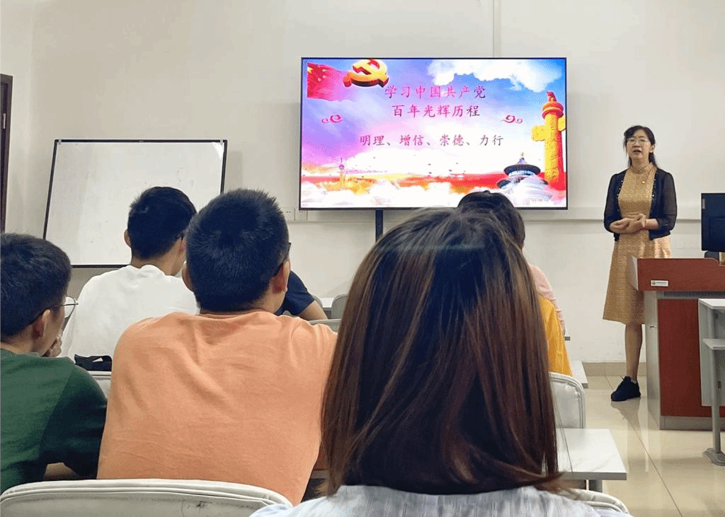 王红宁经理按照时间脉络,带领大家重温了党在“五四”运动时期、抗日战争时期、新民主主义革命时期、社会主义道路探索时期、改革开放新时期的奋斗历程和伟大成就,深情回顾了在中国共产党的领导下中华人民为实现中华民族伟大复兴做出不懈努力和巨大牺牲。让全体同学,进一步加深对中国共产党为什么能,马克思主义为什么行,中国特色社会主义为什么好的理解。