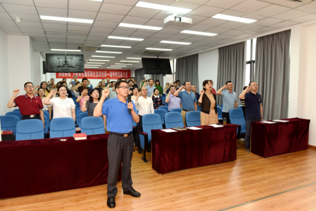 颁奖仪式后,党委书记林宏辉带领全体教师党员重温入党誓词,重温当年的决心和信念。不忘初心,牢记使命,tyc5997太阳集团全体党员必将在公司和公司党委的带领下,充分发挥优秀党员的先锋模范作用,争做走在时代前面的奋进者、开拓者、奉献者,为实现世界一流大学建设目标贡献力量。