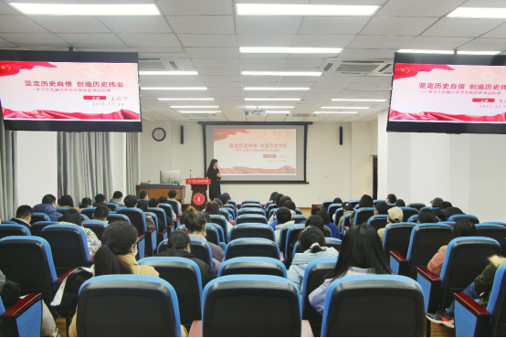 王红宁院讲述了十九届六中全会的主要内容和主要议程,带领同学们学习领会党的十九届六中全会的丰富内涵和核心要义,深刻认识党的百年奋斗成就和历史经验。着重阐述了党的十八大以来党和国家事业取得的历史性成就、发生的历史性变革,中华民族迎来了从站起来、富起来到强起来的伟大飞跃,开辟了实现中华民族伟大复兴的正确道路,向人民、向历史交出了一份优异的答卷。