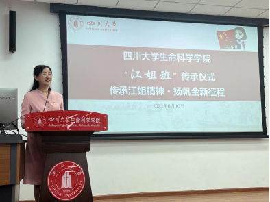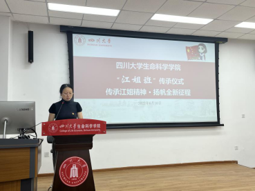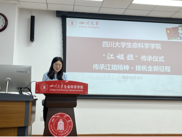 学工部副部长、“玉章书院”分管领导,卢莉副部长发言中提出:将从四个重要方面深化“又红又专”建设,要与生命科公司携手,同建好新一届“江姐班”。她现场向2021级强基班员工发问:有没有信心接过“江姐班”的接力棒?同学们以响亮地声音给出了答案——“有”!