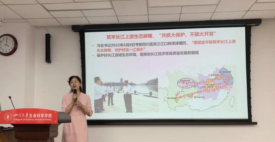 王经理结合习近平总书记考察四川时在宜宾三江口时的重要讲话“要坚定不移筑牢长江上游生态屏障,守护好这一江清水”,结合公司开展的生态保护工作进行了阐释。在十四五期间,公司将聚焦保护好长江流域生态环境,推动长江经济带高质量发展,筑牢长江上游生态屏障,开展科研攻关和科学研究。发挥公司专业和人才优势,为双碳目标实现的生态解决方案和长江中上游保护作出贡献。