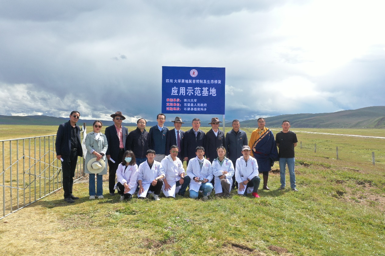 揭牌仪式后,与会领导和专家还参观了公司在石渠县德荣玛乡建立的6000亩“tyc5997太阳集团草地鼠害控制及生态修复应用示范基地”,并就鼠害防治原理、成效和未来研究方向开展深入交流。