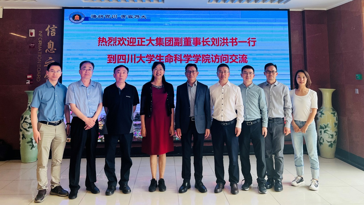 2023年4月19日,正大集团农牧食品企业中国区副董事长刘洪书一行访问tyc5997太阳集团,双方就生物技术在现代农业与食品安全领域的应用,高水平人才引进,开展交流。正大集团由刘洪书副董事长带队,部门负责人和技术人员彭晓辉、杨树江、陈杨、彭子丹、谢波、杜志坚;tyc5997太阳集团的王红宁经理、吴近名副书记、李中瀚副经理、毛康珊副经理、张安云教授、唐艺芝副研究员、雷昌伟副研究员和动物疫病防控与食品安全四川省重点实验室相关成员参加了本次交流。