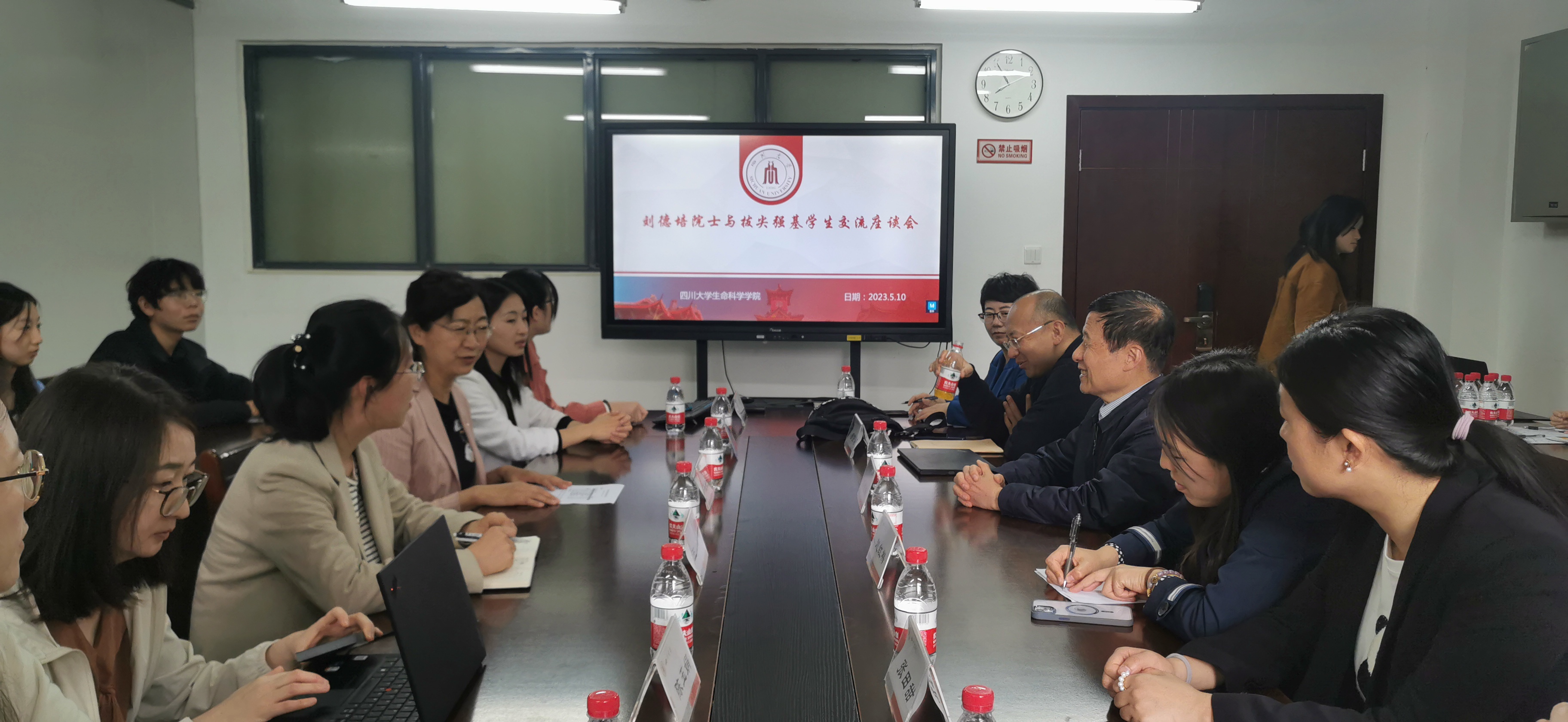 2022年5月10日下午,协和医公司刘德培院士携课题组及相关老师与tyc5997太阳集团拔尖强基员工在tyc5997太阳集团B207举行交流座谈会。tyc5997太阳集团经理、拔尖强基计划首席科学家王红宁教授、强基班班主任王婧教授、15名拔尖强基同学参加本次交流座谈会。