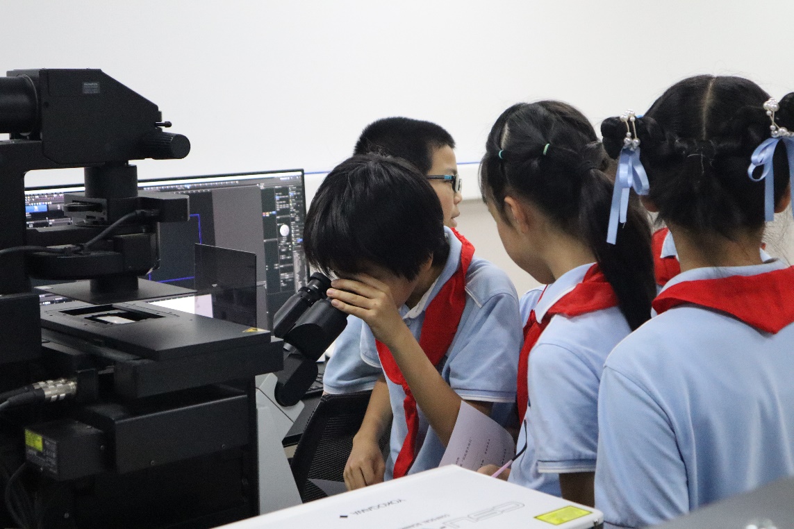 各位同学在研究生志愿者的带领下有序参观了公司共享设备中心,在公司教师及研究生志愿者的讲解下,近距离了解和感受了显微切割系统、超分辨共聚焦显微镜、BD流式细胞分析仪以及Sony流式细胞分选仪等大型贵重精密仪器设备;这个环节,同学们在志愿者们的指导下,一一体验了显微观察等一些基本生物实验的操作,了解了PCR仪器的工作原理,熟悉了生命科学领域常用的实验仪器。共享设备中心的老师还为同学们演示了质谱仪原理的小实验。在数据中心,同学们通过视频了解DNA是什么、为什么去研究、怎样去研究等内容。同学们纷纷表示受益匪浅。
