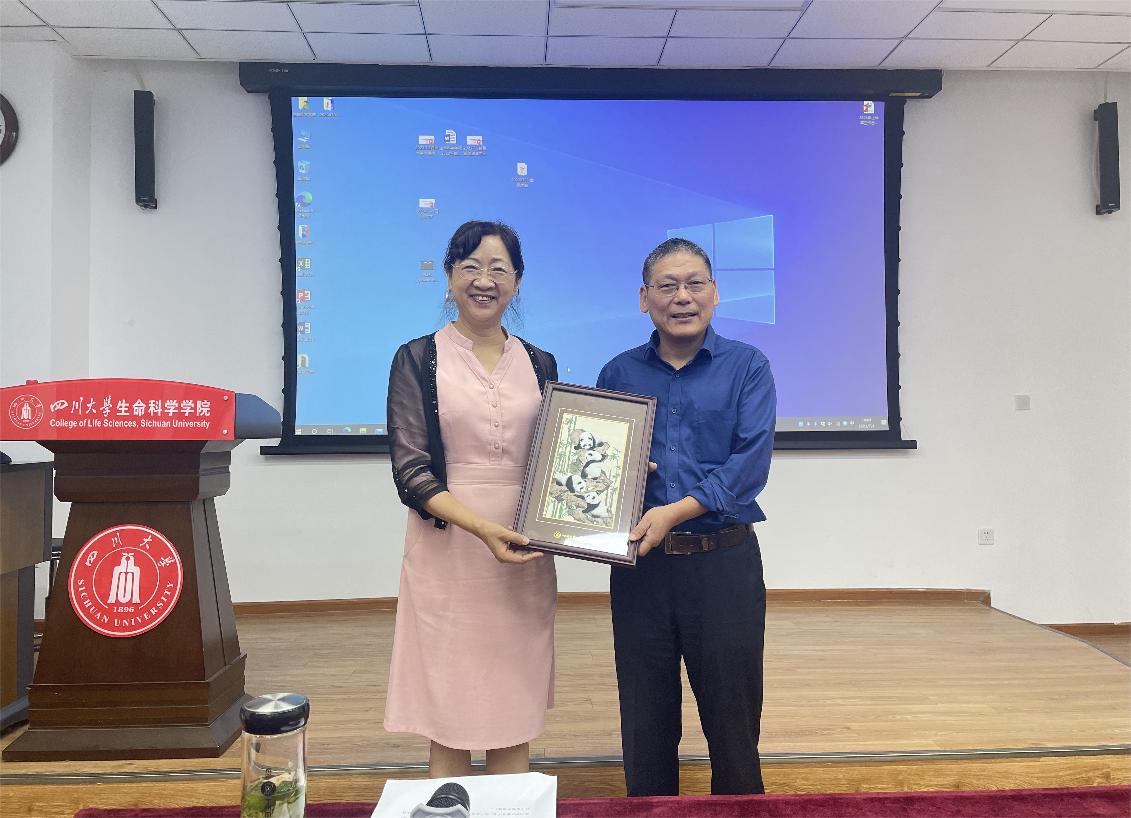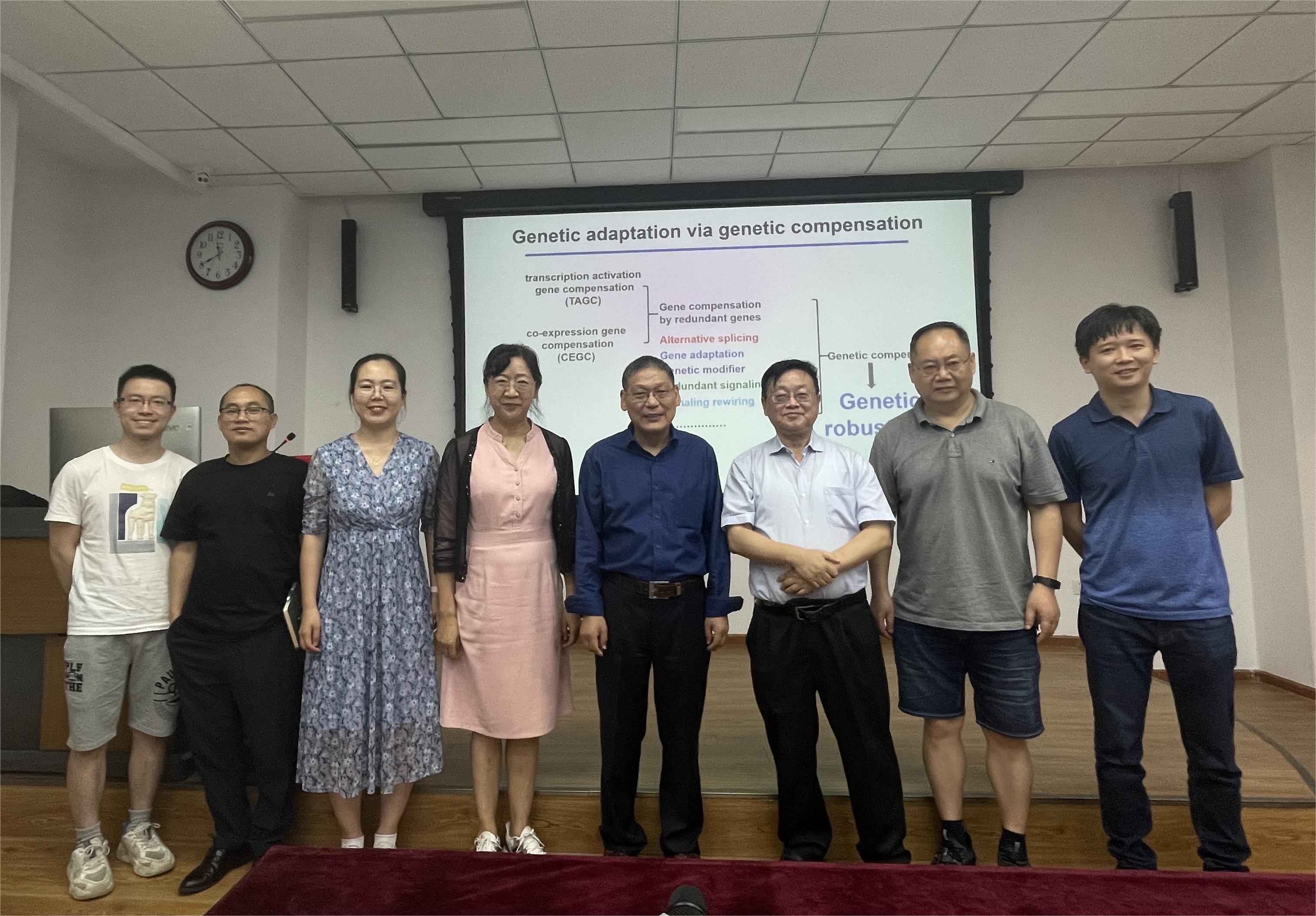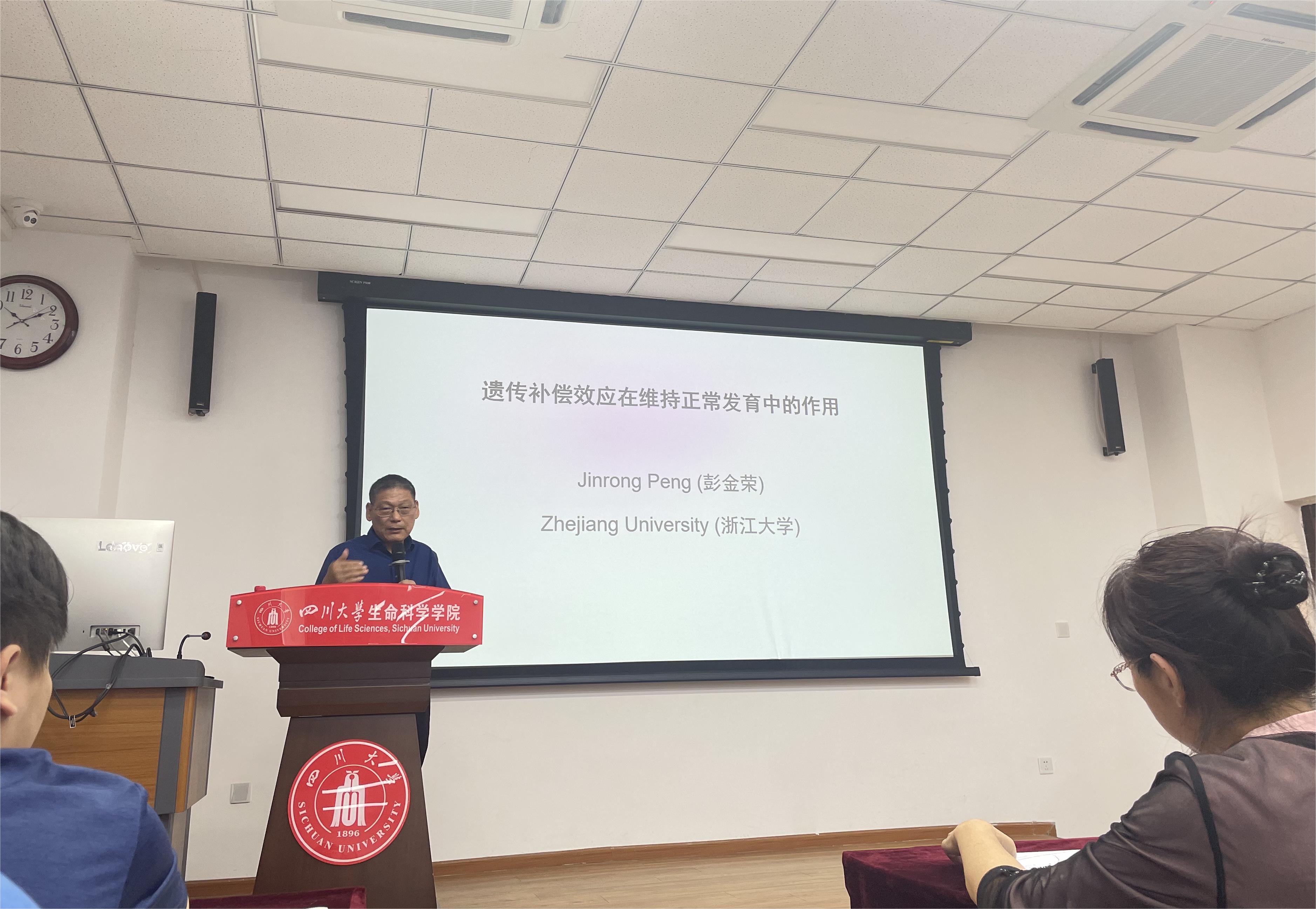 在“望江论坛前沿科学讲座”,彭金荣教授做了《遗传补偿效应在维持正常发育中的作用》的报告,彭金荣教授从植物赤霉素调控和斑马鱼肝脏发育调控两个研究方向,系统阐述了遗传补偿效应分子机制的发现过程。并结合自身30多年的研究经历,阐述对生命科学教育与研究的独到见解。彭金荣教授的报告引发了大家热烈讨论。王红宁经理主持了学术报告,肖智雄教授、杨毅教授、张阳教授、刘明春教授、王婧教授、张剑南副教授以及公司本科生和研究生参与了讨论交流环节。