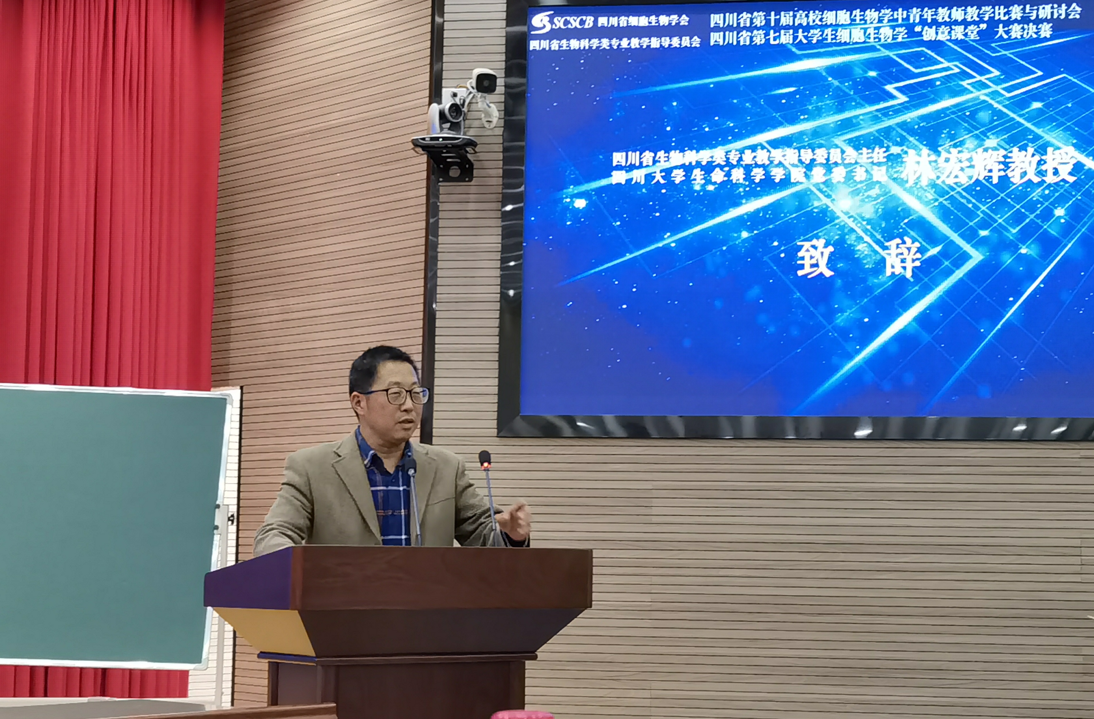 四川省生物科学类专业教学指导委员会主任、四川老员工命科学公司党委书记林宏辉教授致辞