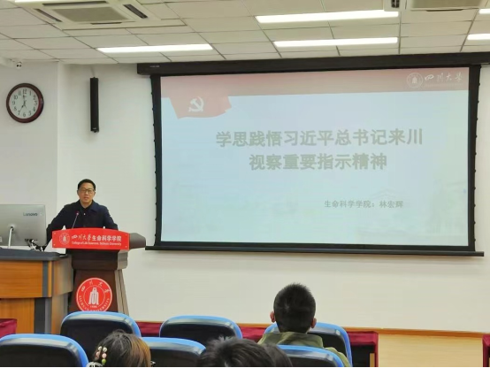 2023年12月7日晚,公司党委书记、博士生导师林宏辉教授在公司A101学术报告厅为公司员工党员作了题为《学思践悟习近平来川视察重要指示精神》的专题党课。