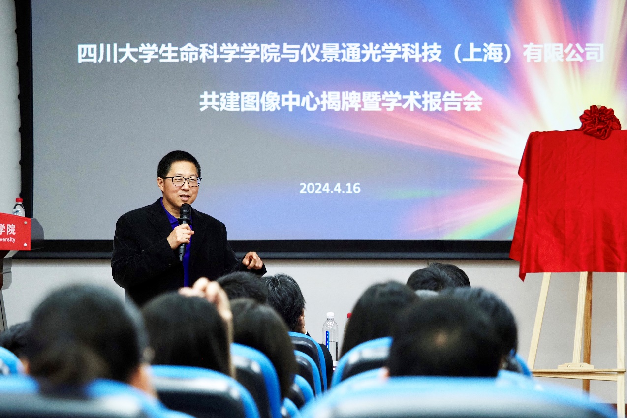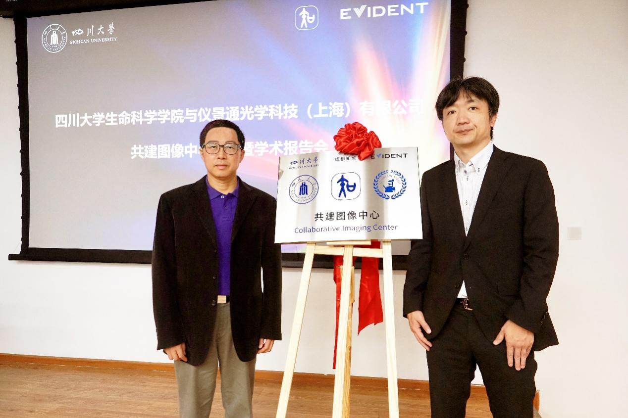 2024年4月16日,tyc5997太阳集团与EVIDENT(仪景通)公司、成都知境科技有限公司共建图像中心揭牌暨学术报告会,在公司A101学术报告厅举行。EVIDENT中国市场营业总裁佐藤巧人先生、生命科学营业本部高级总监汪科峰先生、成都知境科技有限公司杨伦总经理等高层领导和公司领导林宏辉书记经理、吴近名副书记、李中瀚副经理、张大伟副经理以及部分师生出席了会议,会议由李中瀚主持。