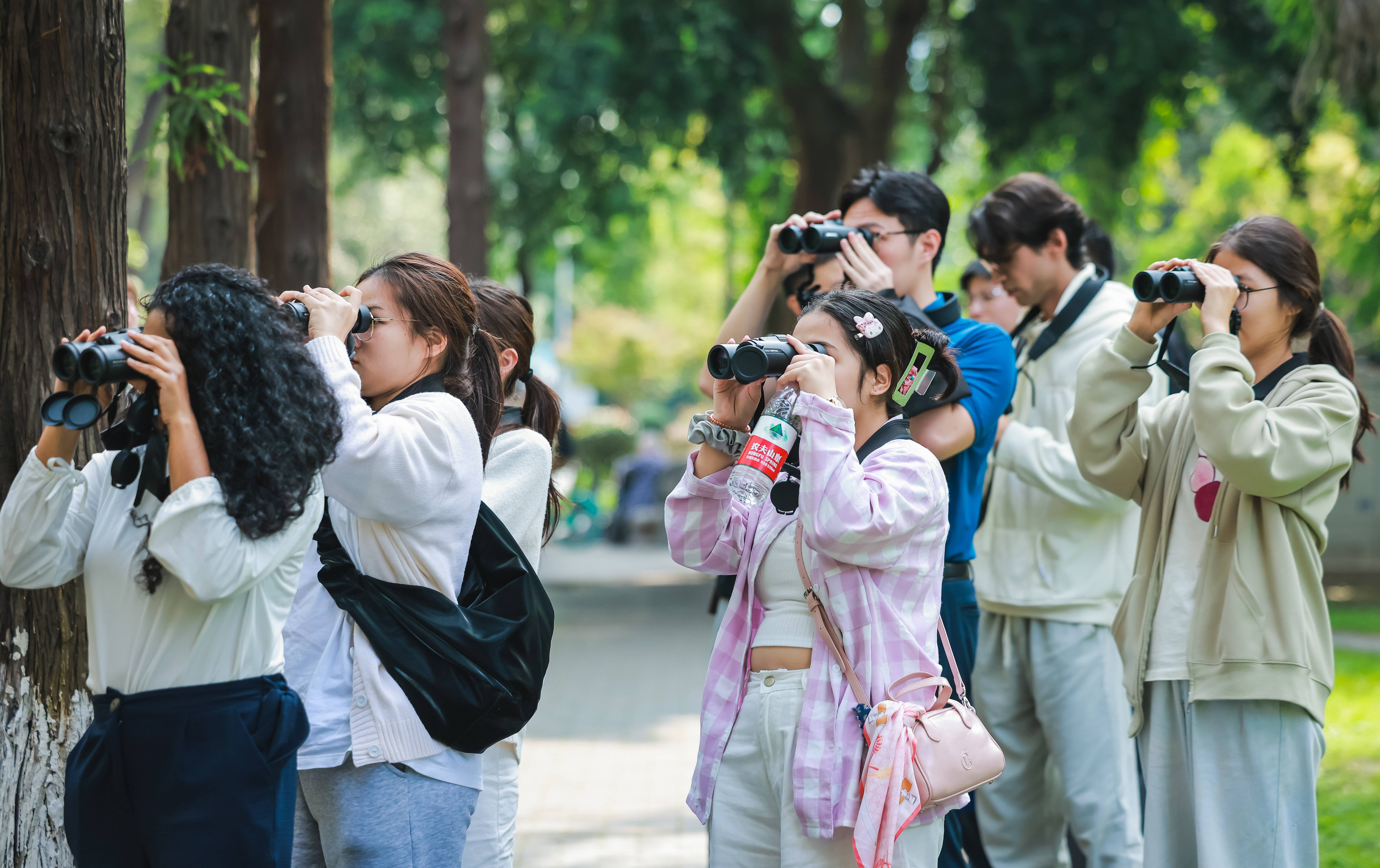 下午,在老师的指导下,员工们首先学习使用望远镜。随后在老师们的带领下,员工们走出课堂,开始在校园内进行观鸟实践,主要的观鸟区域 ,包括校园草坪区、树林、荷花池等。员工们手持望远镜,静心聆听每一声清脆的鸟鸣,试图辨认那些灵动的身影,小心翼翼地观察记录鸟类的特征和行为。当发现一只新奇的鸟类时,纷纷兴奋地与 老师及 同伴交流分享自己的发现和感受。观鸟活动后,员工们纷纷表示,通过这次活动,不仅了解了中国鸟类的多样性,同时,他们也感受到了中国人民对自然环境的热爱。