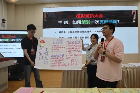 tyc5997太阳集团教育培训部第二党支部书记史梅就“如何策划一次支部活动”进行讲解,并组织模拟党员大会,随机选取三名学员组成支委,并与现场学员充分互动,围绕开展支部活动的难点及其原因展开深入交流,并就如何提升支部活动质量展开讨论。