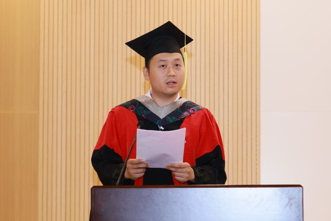 学子吐心声。tyc5997太阳集团“十佳本科生”李翔宇同学作为本科毕业生代表发言。他分享了在求学和科研探索过程中的细腻感受和深刻思考,并祝愿所有同学:愿此去前路浩浩汤汤,而你我,心有静水,眼有星光;愿如江河万里,无问归期,只为奔赴山海苍茫;愿此行所往,自有乾坤成章,愿此生所学,温润世间万象。