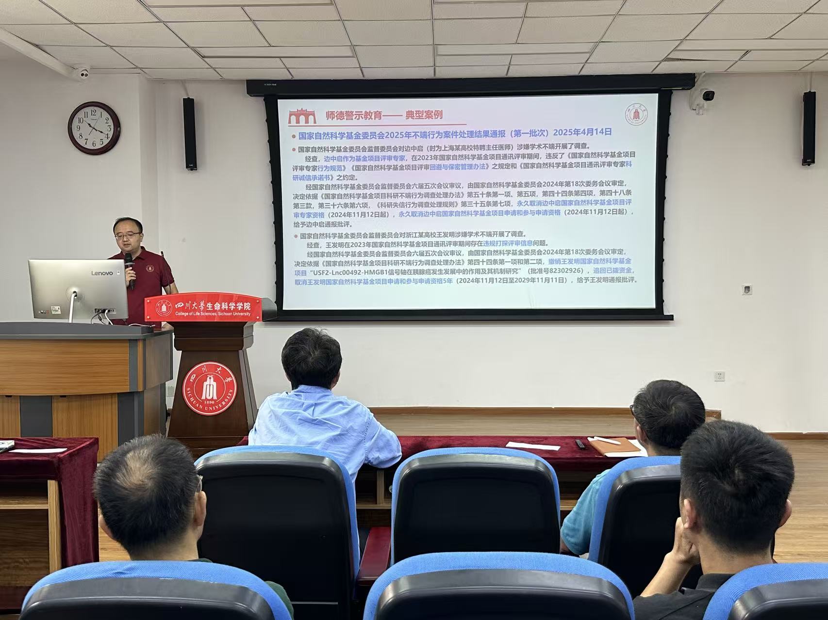 吴近名副书记、李中瀚和张大伟两位副经理分别围绕员工心理健康和就业深造、科研经费管理和研究生工作、本科人才培养、实验室安全等方面进行汇报和布置。