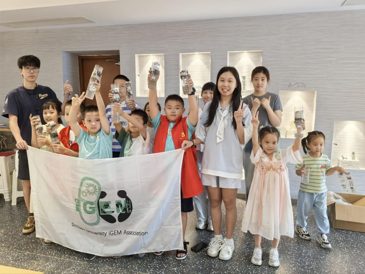 有价值的科研成果离不开扎实的“人类实践(Human Practice)”。备赛期间,团队秉持“顶天立地”的科研理念,一方面深入美富特环保集团、四川清和科技有限公司等企业调研,并走访了四川省生态环境厅,从产业需求和宏观政策层面深化对课题的理解,让研究扎根于中国大地;另一方面,团队通过举办“tyc5997太阳集团微生物应用设计大赛”、前往中小学开展科普宣讲等活动,将前沿科学知识反哺社会,积极传播合成生物学火种,实现了科研探索与社会服务的有机统一。这些活动培养了团队成员的社会责任感,提升了队员的使命感,为培养做“顶天立地”科学研究的科研工作者奠定了基础。