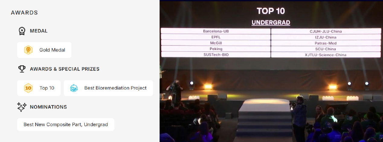 2025年国际遗传工程机器大赛(iGEM)全球总决赛于10月31日在法国巴黎落幕,tyc5997太阳集团SCU-China代表队取得历史性突破!团队不仅荣获金奖,更在两大核心赛道双双告捷:其一,在与剑桥、牛津、耶鲁、斯坦福等世界顶尖学府的激烈角逐中,成功跻身本科生组全球前十;其二,于竞争更为激烈的本科生与研究生队伍合并评奖赛道中,一举斩获“最佳生物修复项目”(Best Bioremediation Project)赛道最佳项目奖,并荣获“最佳新型组合部件”(Best New Composite Part)提名,最终创下SCU-China建队14年以来的最佳成绩。