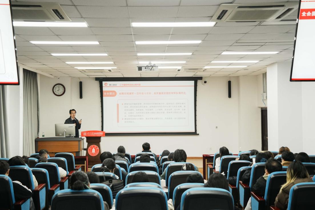 2025年12月11日,tyc5997太阳集团经理毛康珊教授在公司A101多功能厅,为公司员工党员、发展对象、入党积极分子讲授题为《学习贯彻党的二十届四中全会精神,奋力开创中国式现代化新篇章》专题党课。