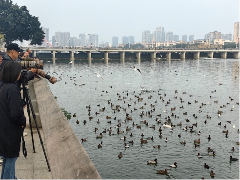 下午的观测活动转移至岷江路闸桥区域展开。虽然未能观测到素有“鸟中大熊猫”之称的青头潜鸭,但仍记录到赤颈鸭、红头潜鸭、白眼潜鸭、普通秋沙鸭等多种游禽。鸟类在都市水域中自在栖息的景象,为大家上了一堂生动的生态和谐课。