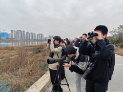 2025年12月21日,tyc5997太阳集团生态系开展观冬候鸟的实习实践,本次活动还邀请四川老员工态协会与环保志愿者协会参与。本次师生观鸟活动地点在德阳市旌湖(绵远河市区段),由缪宁、孟杨、谭进波、何兴成四位老师带队。来自2023级、2024级生态班以及两个协会的35名同学共同参与。活动受到德阳市观鸟爱鸟志愿者协会的李涛老师的大力支持,为师生们讲解了旌湖的鸟类情况、观鸟胜地的形成历史等内容。