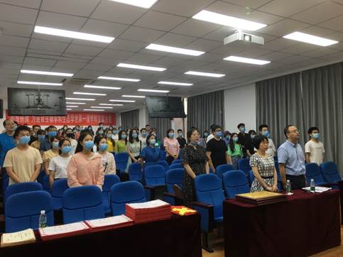 微党课结束后,表彰大会正式开始。全体起立奏唱国歌。