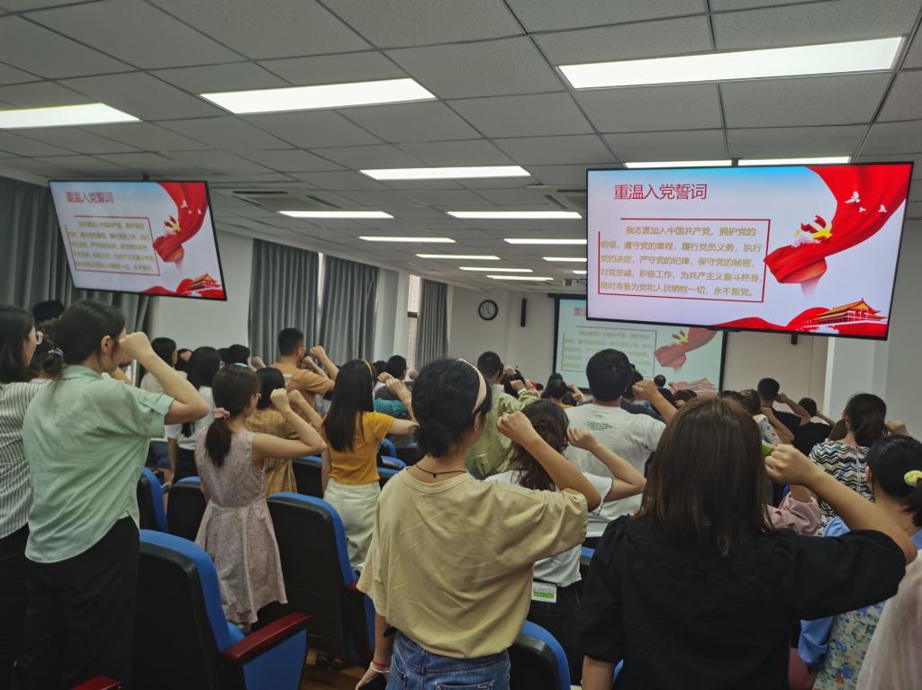 最后,全体人员起立,在吴书记的带领下重温入党誓词。吴书记强调,全党同志都要把对马克思主义的信仰、对中国特色社会主义的信念作为毕生追求,永远信党、爱党、为党,在各自岗位上顽强拼搏,不断把为崇高理想奋斗的实践推向前进!