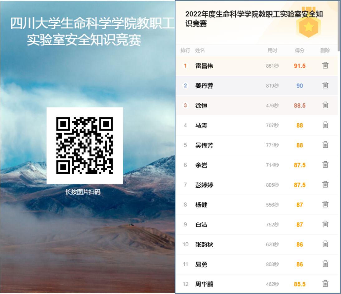 实验室安全是高校教学、科研工作的重要保障,tyc5997太阳集团工会举办了2022年度教职工实验室安全知识竞赛,活动主题为“守护师生安全,共建和谐校园”。通过实验室安全知识竞赛活动,让教职工在竞赛活动中掌握实验室相关安全知识,提高安全意识,减少实验室安全隐患,共建和谐校园。2022年11月18日-11月20日,公司成功举办“实验室安全知识”线上竞赛活动。