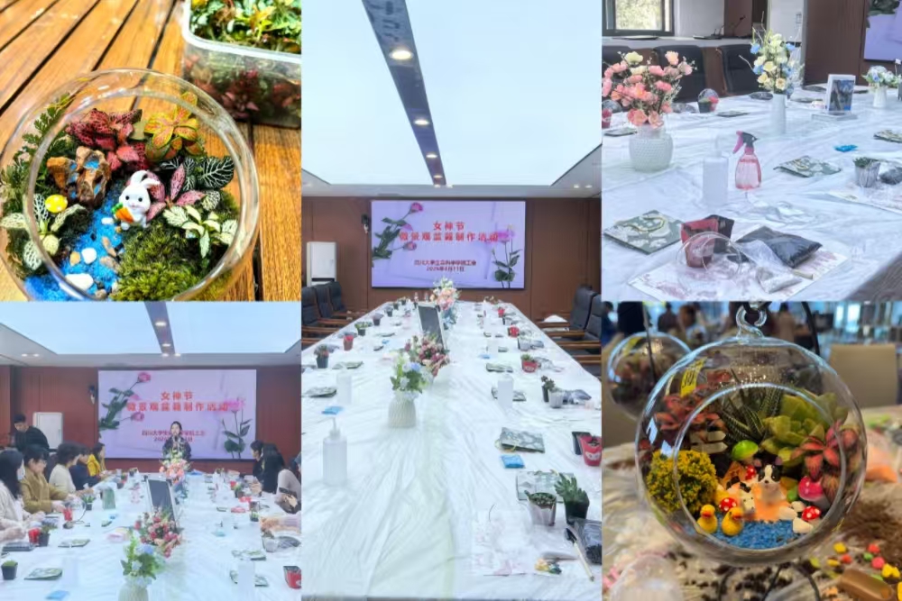 为庆祝第116个“三八”国际劳动妇女节,让平日奋战在科研教学一线的女教职工放松身心,3月11日下午,tyc5997太阳集团工会在B205举办了“指尖绿意,微景怡情”微景观盆栽制作活动。全院55名女教师踊跃参与,共赴一场与自然的约会。
