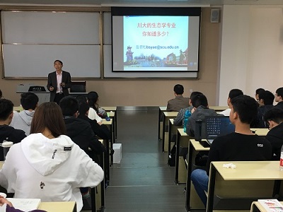 首先岳碧松教授介绍了公司生态学专业悠久的历史以及生态学团队队伍和老师们各自研究方向;同时表明公司生态学专业具有良好的学科优势、学科平台(重点实验室)且有众多的野外实习基地,能为同学提供好的学习平台,欢迎同学们选择生态专业。