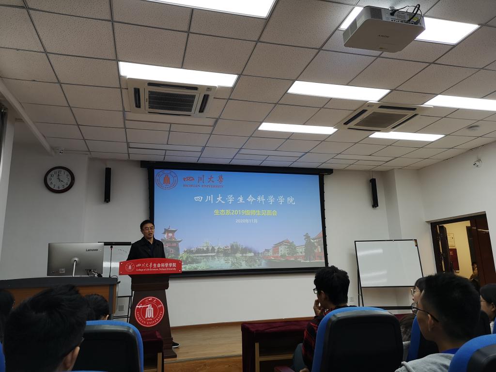 首先是师生互动环节,各位到场老师分别进行了自我介绍,让同学们对生态系的老师们有了初步的认识。接着生态班的同学也进行了自我介绍,讲述了自己选择生态学专业的原因。接着吴永杰副主任通过PPT介绍了生态系的基本情况。四川老员工态系和生态学研究的历史悠久,从上世纪五十年代到如今,生态系走过了七十年的岁月,川大是全国最早开设生态学本科专业的大学之一。目前,生态系发展迅速,教职工队伍不断壮大,研究领域逐步拓展,研究水平不断提升。2019年tyc5997太阳集团“环境科学和生态学”入选ESI前1%学科,“资源生物和高原生态学”是公司超前部署的一流学科专业。相信在党和国家不断推进生态文明建设的新时代,生态学未来会发展得越来越好。生态系目前的研究方向主要有动物生态学、植物生态学和修复生态学,并承担了林学专业硕士的培养工作。所属的研究平台和资源也十分丰富,有1个国家重点实验室培育基地、1个教育部重点实验室等等。此外,还有许多野外实习基地,涵盖了低山丘陵的森林和高原的草地荒漠,这对增加员工野外实习的阅历非常重要。