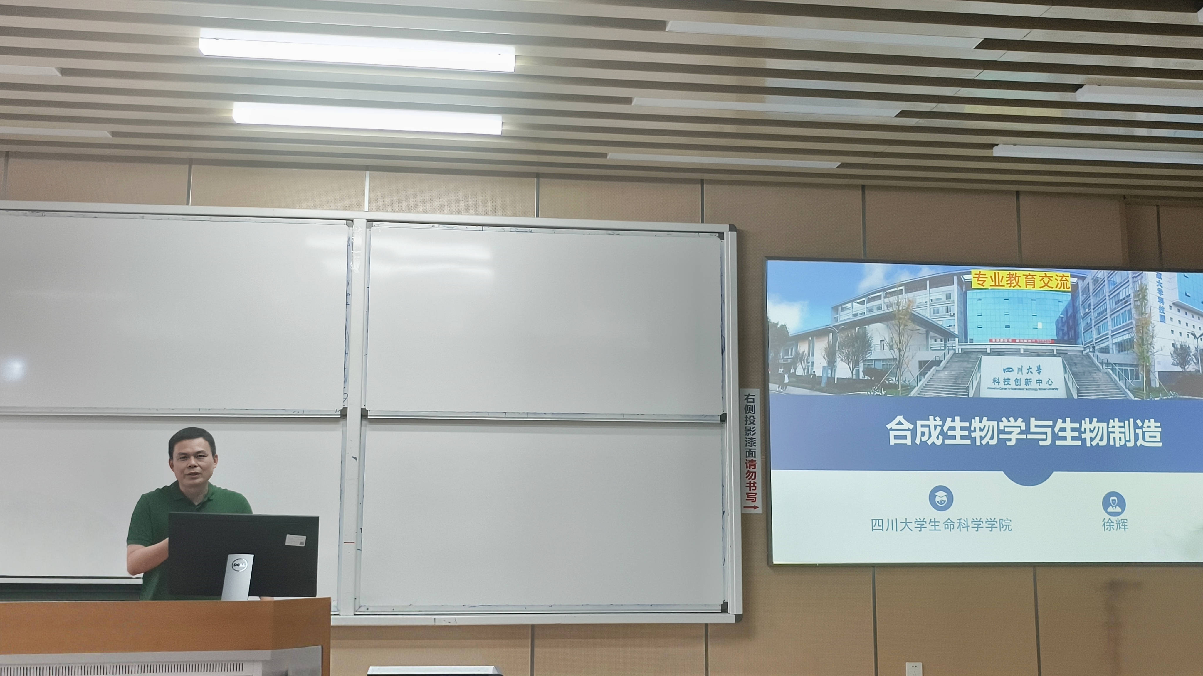 徐辉教授围绕合成生物学与生物制造,阐述了生物工程的发展历程与战略意义,强调其在推动高质量发展中的重要作用,鼓励同学们构建完整知识体系,保持对生物学的热爱。
