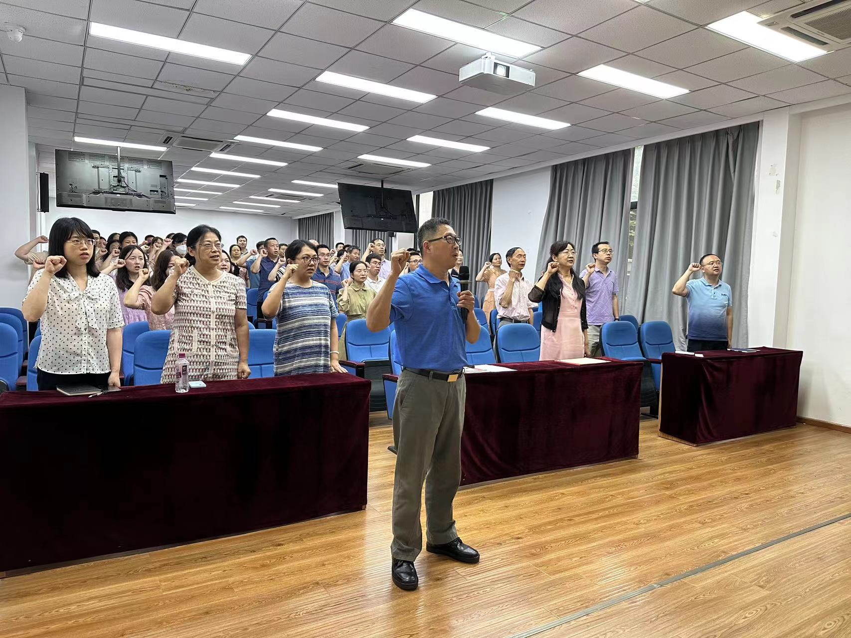 表彰结束之后,公司党委书记林宏辉同志结合主题教育“学思想、强党性、重实践、建新功”的总要求,对全体党员提出了“坚定理想信念、争做优秀党员”的目标,并带领全体党员一起重温入党誓词,希望公司教职工党员铭记入党誓词、勇扛历史使命,向心凝聚、向难攻坚,干在实处,用实干实绩书写奋发有为的人生篇章。