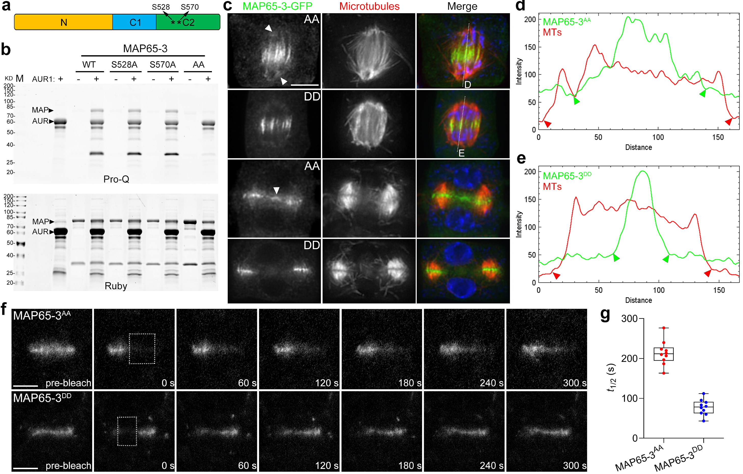 图2 α-Aurora缺陷影响MAP65-3的定位及周转