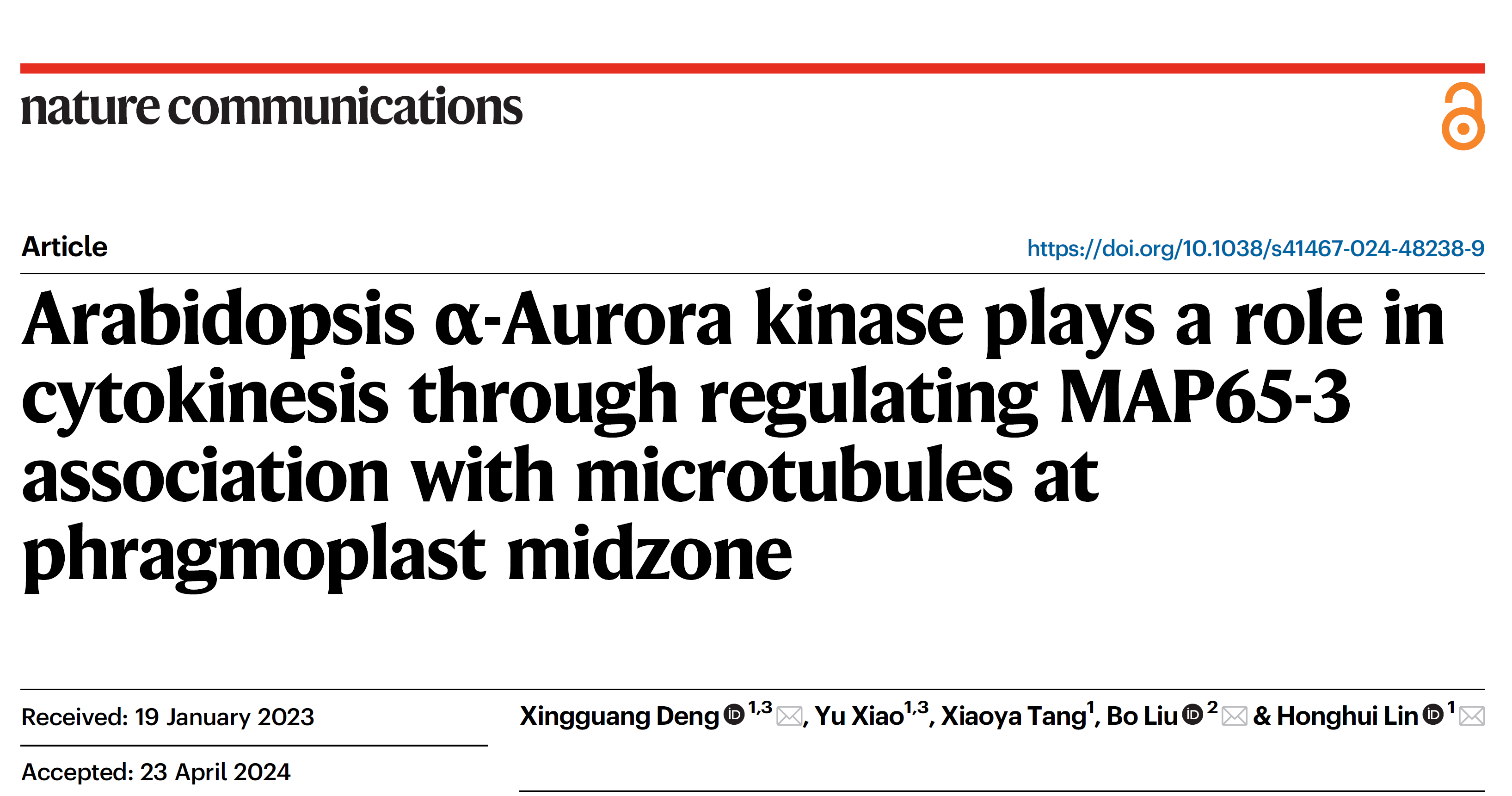 近日,tyc5997太阳集团林宏辉/邓星光团队在Nature Communications发表了题为“Arabidopsis α-Aurora kinase plays a role in cytokinesis through regulating MAP65-3 association with microtubules at phragmoplast midzone”的研究论文。该研究为植物胞质分裂的调控机制提供了新的见解。