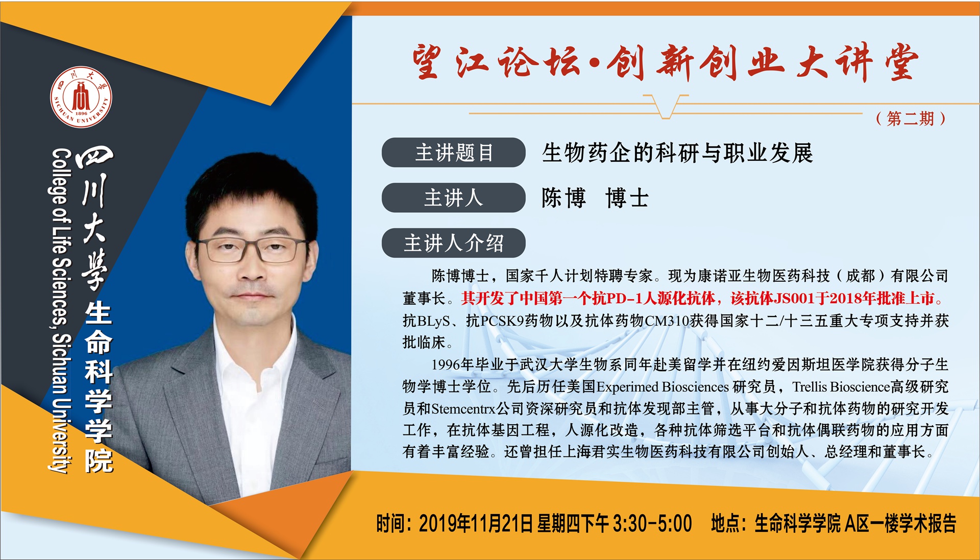 康诺亚生物医药科技有限公司董事长陈博博士11月21日专题报告