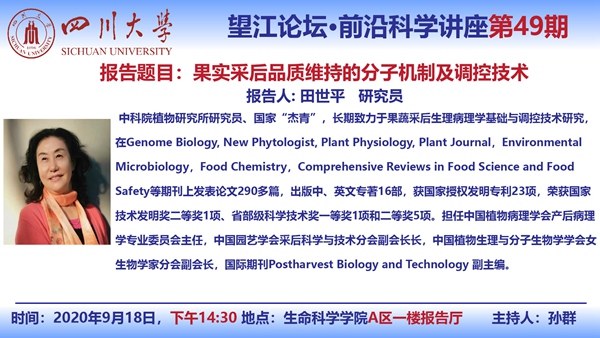 中科院植物研究所田世平研究员9月18日学术报告