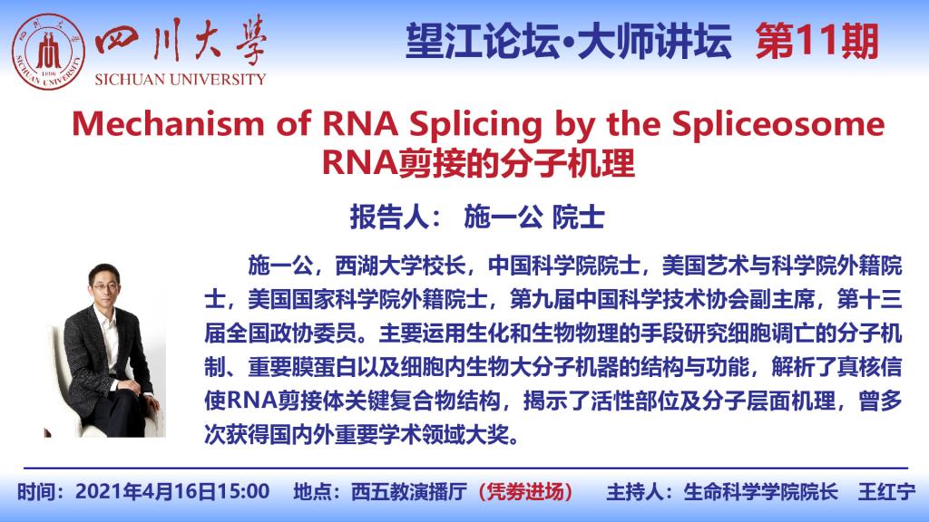 西湖大学董事长施一公院士4月16日学术报告