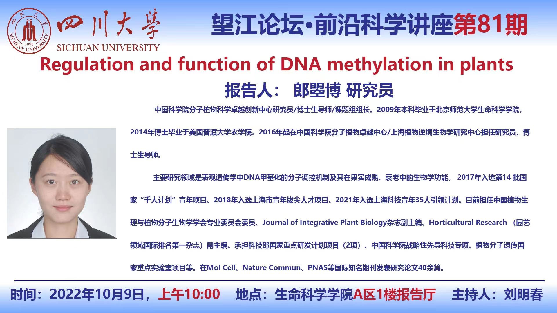 郎瞾博研究员10月9日学术报告