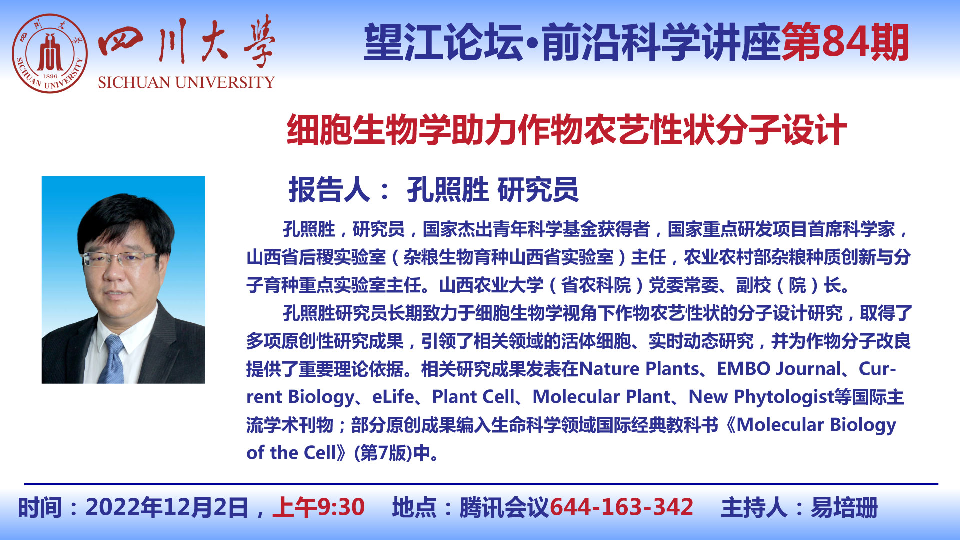 望江论坛-前沿科学讲座第84期:孔照胜研究员12月2日学术报告(线上)