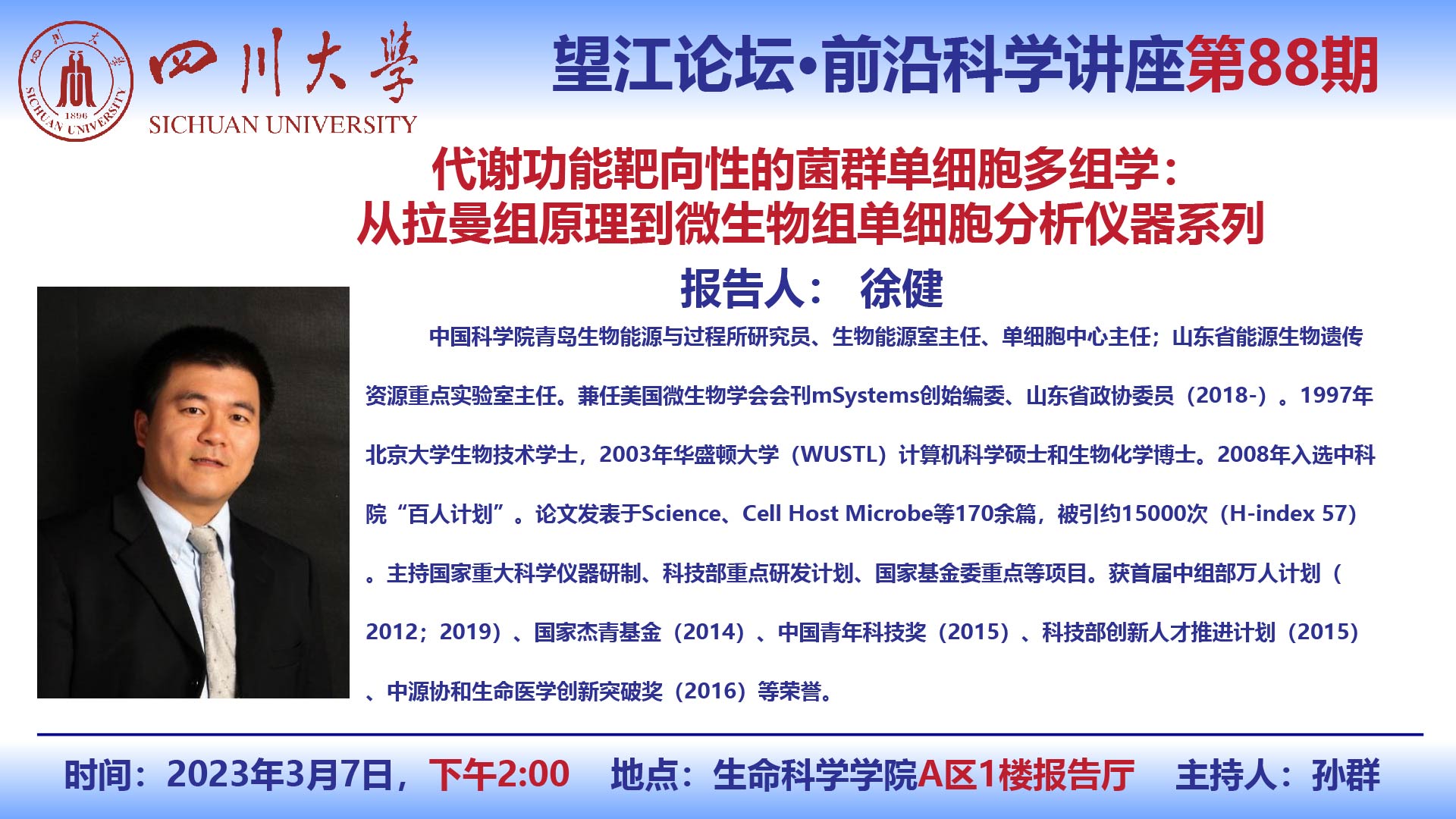 望江论坛-前沿科学讲座(第88期):徐健研究员3月7日学术报告