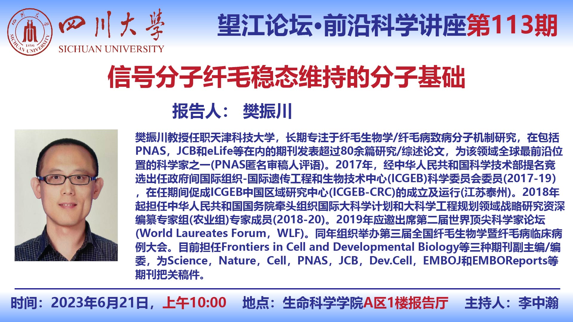 望江论坛-前沿科学讲座(第113期):樊振川教授6月21日学术报告